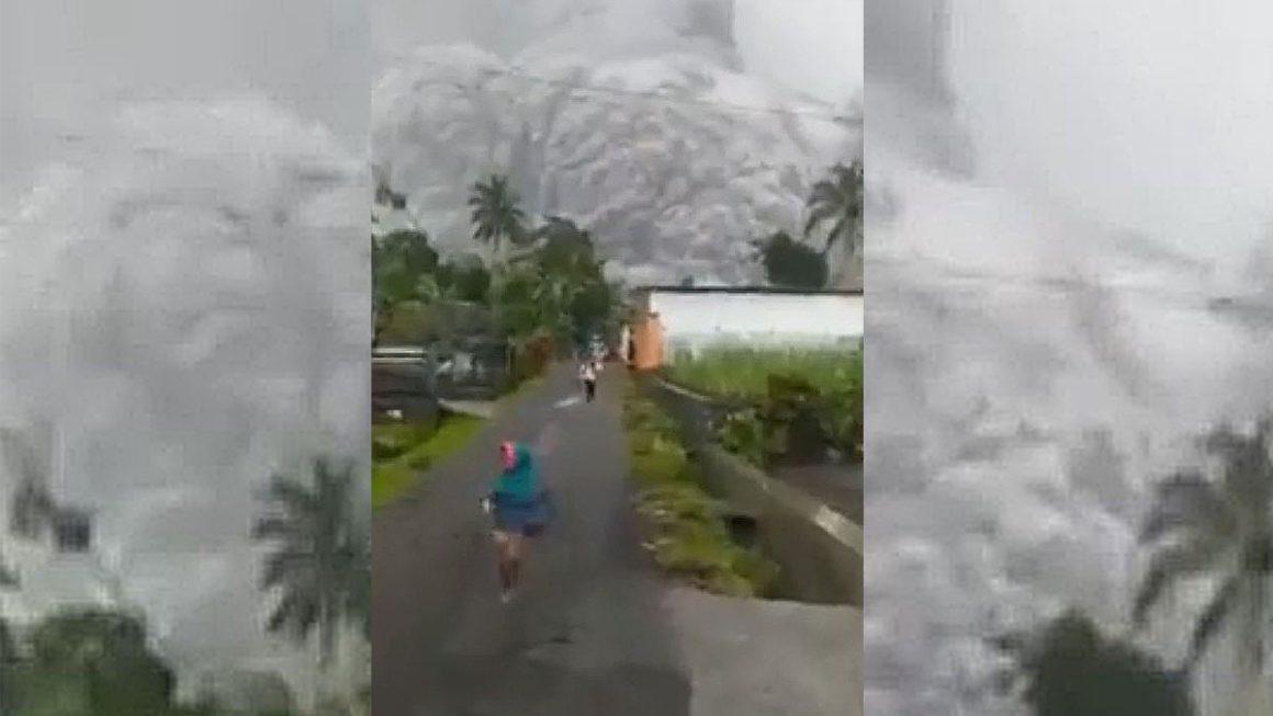 തീയും പുകയും കലര്‍ന്ന ലാവ കുത്തിയൊലിക്കുന്നതിന്റെ മുന്നിലൂടെ ജീവനു വേണ്ടി നിലവിളിച്ചു കൊണ്ട് ഓടുന്ന നാട്ടുകാരുടേയും ചിത്രങ്ങളാണ് സമൂഹമാധ്യമങ്ങളില്‍ പ്രചരിച്ചു കൊണ്ടിരിക്കുന്നത്.12,000 മീറ്റര്‍ പ്രദേശത്ത് ആകാശം ചാരത്തില്‍ മൂടിയതിനാല്‍ അനേകം പ്രദേശങ്ങളില്‍ പകലും രാത്രിക്ക് സമാനമാണ്. ഈ ദൃശ്യങ്ങള്‍ ഇന്തോനേഷ്യയിലെ ദുരന്ത നിവാരണ ഏജന്‍സിയാണ് പുറത്തുവിട്ടത്.