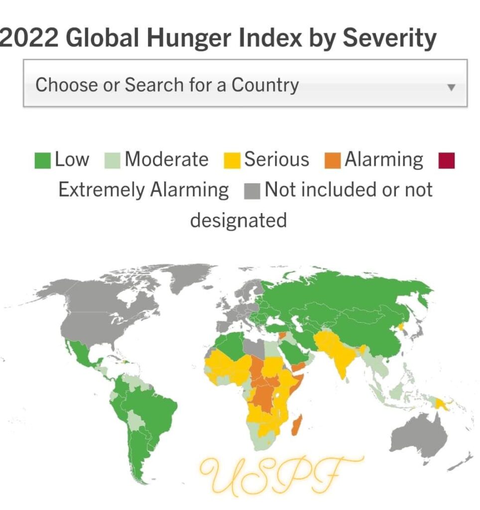 ആഗോള പട്ടിണി സൂചികയിലെ 121 രാജ്യങ്ങളിൽ, ഇന്ത്യ (107) അതിന്റെ അയൽരാജ്യങ്ങളായ നേപ്പാൾ (81), പാകിസ്ഥാൻ (99), ശ്രീലങ്ക (64), ബംഗ്ലാദേശ് (84) എന്നിവയ്ക്ക് പിന്നിലാണ്.ആഗോള പട്ടിണി സൂചികയിൽ (GHI) ഇന്ത്യ 2022-ൽ 107-ാം സ്ഥാനത്തേക്ക് പിന്തള്ളപ്പെട്ടു, 2021-ൽ 101-ാം സ്ഥാനത്ത് നിന്ന് താഴേക്ക്.