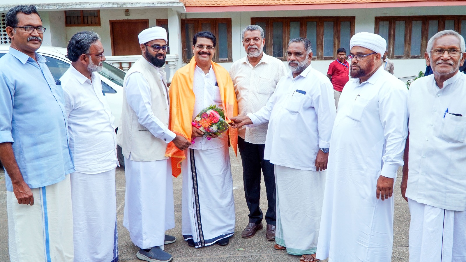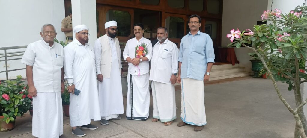 കേരള സംസ്ഥാന വഖഫ് ബോർഡ്ചെയർമാനായി തിരഞ്ഞെടുക്കപ്പെട്ട അഡ്വക്കേറ്റ് എംകെ സക്കീർ ഹുസനെതിരുവനന്തപുരം ഗസ്റ്റ് ഹൗസിൽ നടന്ന ചടങ്ങിൽ സുന്നി സംഘടന നേതാക്കൾഅനുമോദിച്ചു എസ് വൈ എസ് സംസ്ഥാന സെക്രട്ടറി സിദ്ദീഖ് സഖാഫി നേമം,കേരള മുസ്ലിം ജമാഅത്ത് ജില്ലാ പ്രസിഡൻറ് കെ എം ഹാഷിം ഹാജി ജില്ലാ ഫിനാൻസ് സെക്രട്ടറി ജാഫർ ഫാളിലി.എസ് മുഹമ്മദ് റാഫി.എം അബ്ദുൽ ഹസീസ് പള്ളിമുക്ക് എന്നിവർ പങ്കെടുത്തു.ന്യൂനപക്ഷ കമ്മീഷൻ അംഗം എ സൈഫുദ്ദീൻ ഹാജി സമീപം