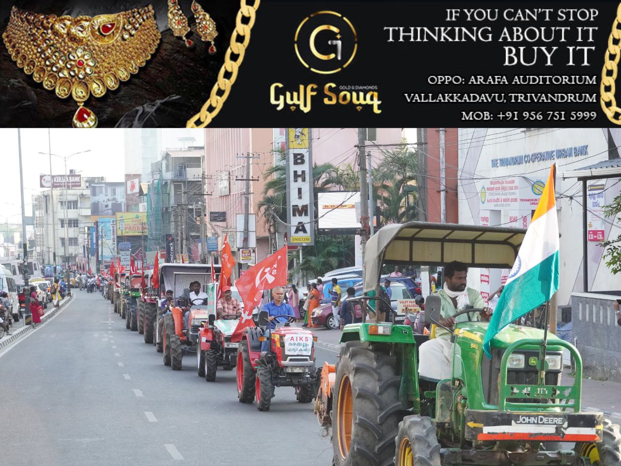 സംയുക്ത കർഷക സമിതി തിരുവനന്തപുരം ജില്ലാ കമ്മിറ്റിയുടെ ആഭിമുഖ്യത്തിൽ നടത്തിയ ട്രാക്ടർ റാലി എസ്.എൻ വി സ്കൂൾ പരിസരത്തുനിന്നും ആരംഭിച്ച് പാളയം രക്തസാക്ഷി മണ്ഡപത്തിൽ സമാപിച്ചു.