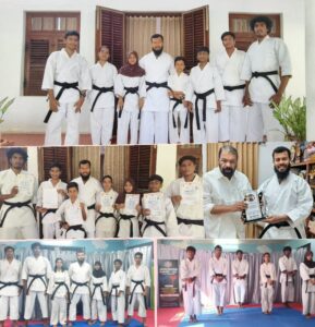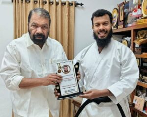 ബ്ലാക്ക് ബെൽറ്റ് സർട്ടിഫിക്കറ്റുകൾ വിതരണം ചെയ്ത മന്ത്രി വി. ശിവൻ കുട്ടിക്ക് മെയ്റോ മാർഷ്യൽ കരാട്ടെ പ്രസിഡൻ്റ് ശിഹാൻ. അബ്ദുൽ റഹുമാൻ പള്ളിത്തെരുവ് ഉപഹാരം നൽകി ആദരിക്കുകയും ചെയ്തു.