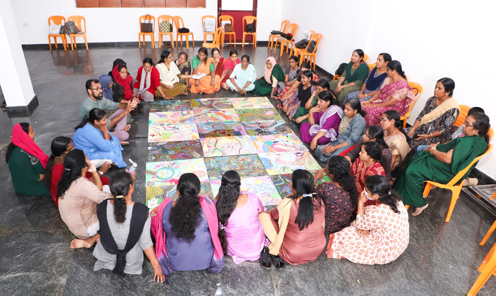 കൊച്ചി: കൈപ്പമംഗലം ഗ്രാമപഞ്ചായത്തിലെ അങ്കണവാടി പ്രവര്ത്തകര്ക്കായി കൊച്ചി ബിനാലെ ഫൌണ്ടേഷൻ ‘കലാവാടി’ എന്ന പേരില് ഏകദിന ശില്പശാല സംഘടിപ്പിച്ചു. കൊച്ചി ബിനാലെ ആറാം ലക്കത്തിന്റെ മുന്നോടിയായി പൊതുസമൂഹത്തില് കലാ സാന്നിദ്ധ്യം കൊണ്ടു വരുന്നതിന് ലക്ഷ്യമിട്ടുള്ള എബിസി ആര്ട്ട് റൂം പരിപാടിയുടെ ഭാഗമായാണ് ‘കലാവാടി’ സംഘടിപ്പിച്ചത്.കൈപ്പമംഗലം ഗ്രാമപഞ്ചായത്തിന്റെ 2025-26 വാര്ഷിക പദ്ധതിയിലുള്പ്പെട്ട ജാഗ്രതാ സമിതി പ്രവര്ത്തനങ്ങളുമായി ഏകോപിപ്പിച്ചാണ് ശില്പശാല സംഘടിപ്പിച്ചത്. പഞ്ചായത്തിലെ 33 അങ്കണവാടി പ്രവര്ത്തകരും ഈ പരിശീലന പരിപാടിയില് പങ്കെടുത്തു.കലയെ പൊതുമണ്ഡലത്തില് പരിചിതമാക്കുന്നതിന് കൊച്ചി ബിനാലെ ഫൗണ്ടേഷന്(കെബിഎഫ്) നടത്തുന്ന പ്രധാനപ്പെട്ട ഉദ്യമങ്ങളിലൊന്നാണ് ആര്ട്ട് ബൈ ചില്ഡ്രന്.