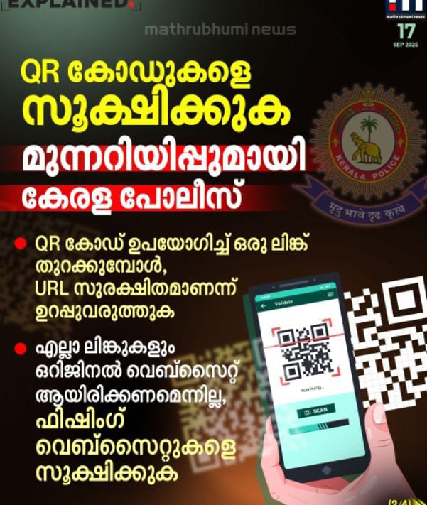 * QR കോഡ് ഉപയോഗിച്ച് ഒരു ലിങ്ക് തുറക്കുമ്പോൾ, URL സുരക്ഷിതമാണെന്നും വിശ്വസനീയമായ ഉറവിടത്തിൽ നിന്നാണ് വരുന്നതെന്നും ഉറപ്പാക്കേണ്ടത് പ്രധാനമാണ്.