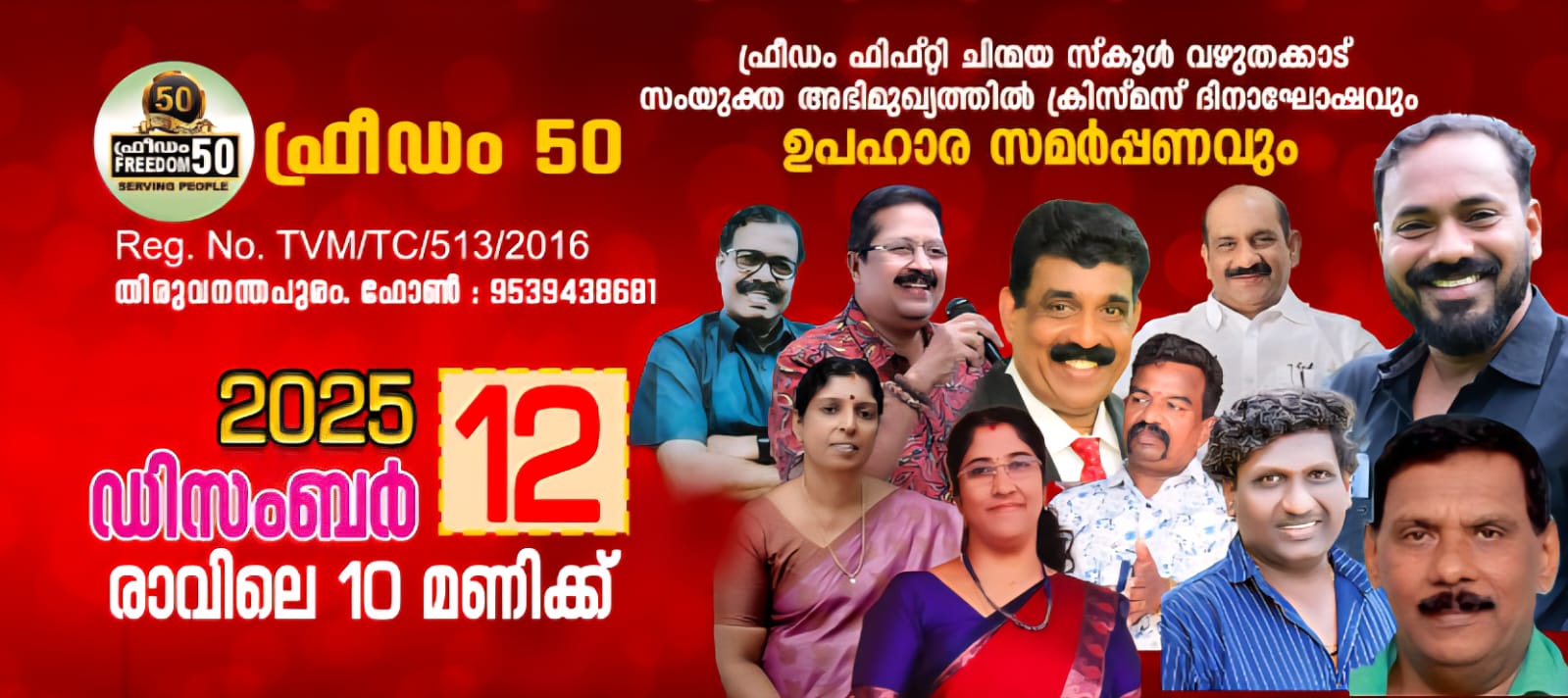 ഫ്രീഡം ഫിഫ്റ്റി കൾച്ചറർ ഓർഗനൈസേഷൻ ചിന്മയ സ്കൂൾ വഴുതക്കാട് സംയുക്ത അഭിമുഖ്യത്തിൽ ക്രിസ്മസ് ദിനാഘോഷവും ഉപഹാരസമർപ്പണവും